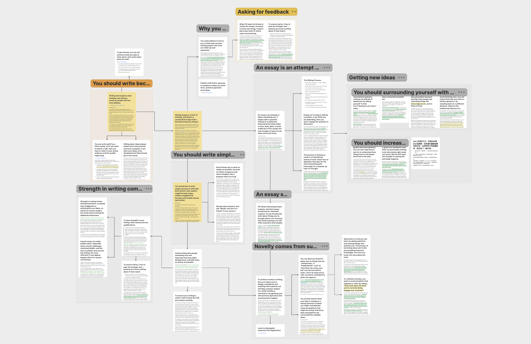 此外,由於卡片重複使用的能力,比較不同來源的想法的流程也變得容易了。你可以輕鬆地綜合來自不同來源的想法。